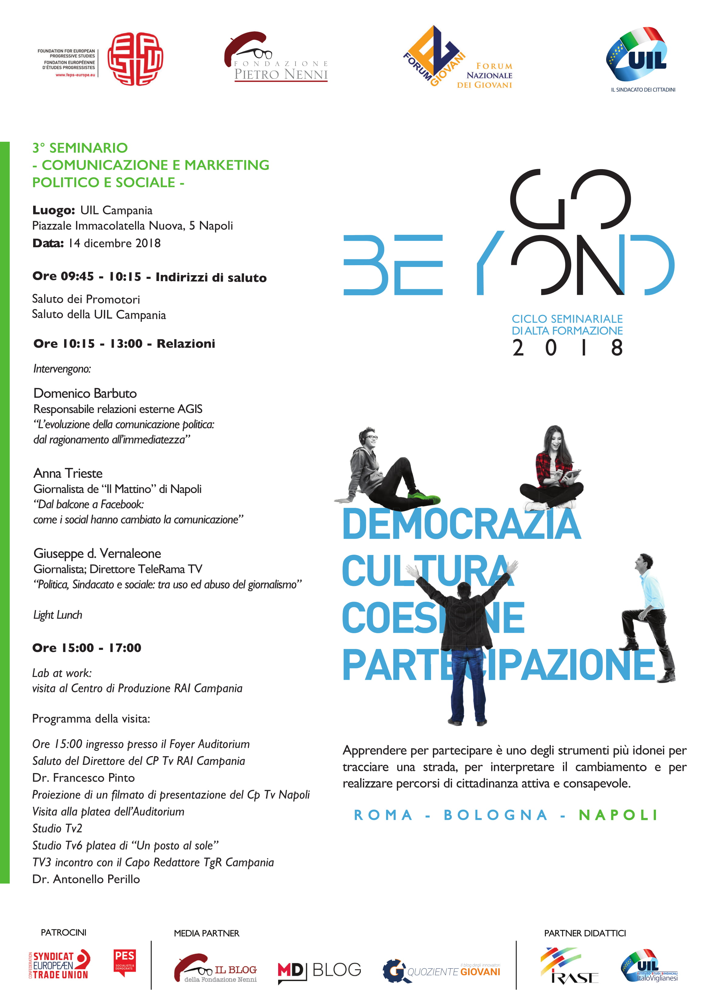 14 Dic 3° Seminario Comunicazione e Marketing Politico e Sociale Go Beyond Posted at 11:54h in Convegni by inetika 0 Likes