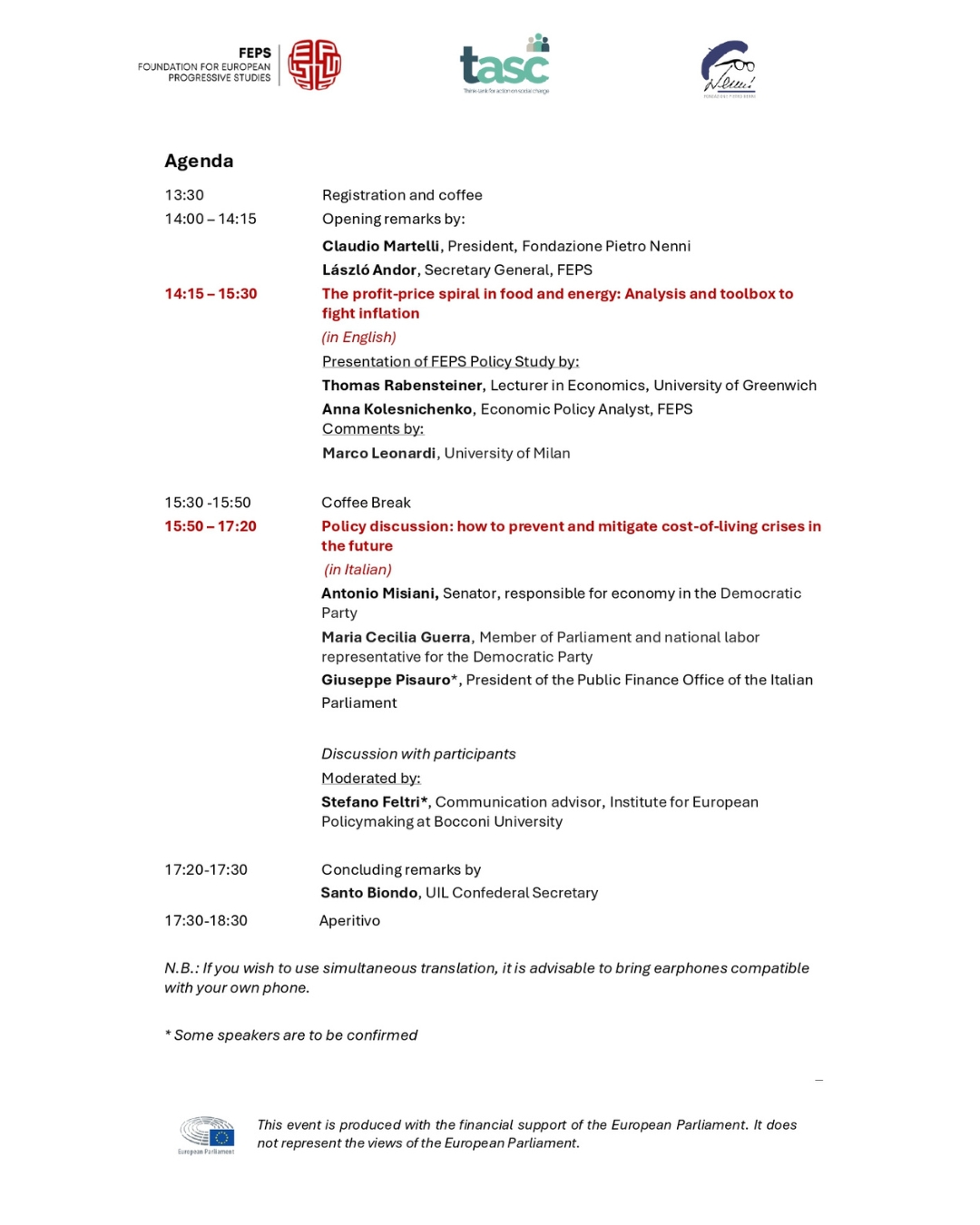 23 Set Presentazione della ricerca “La spirale profitto-prezzo nei settori alimentare ed energetico”