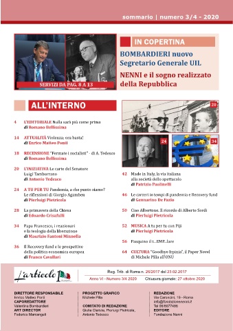come sottolinea il Presidente della Fon- celebre il suo slogan: “Il socialismo è por- Anno VI - Numero 3/4 2020 Chiusura giornale: 27 ottobre 2020